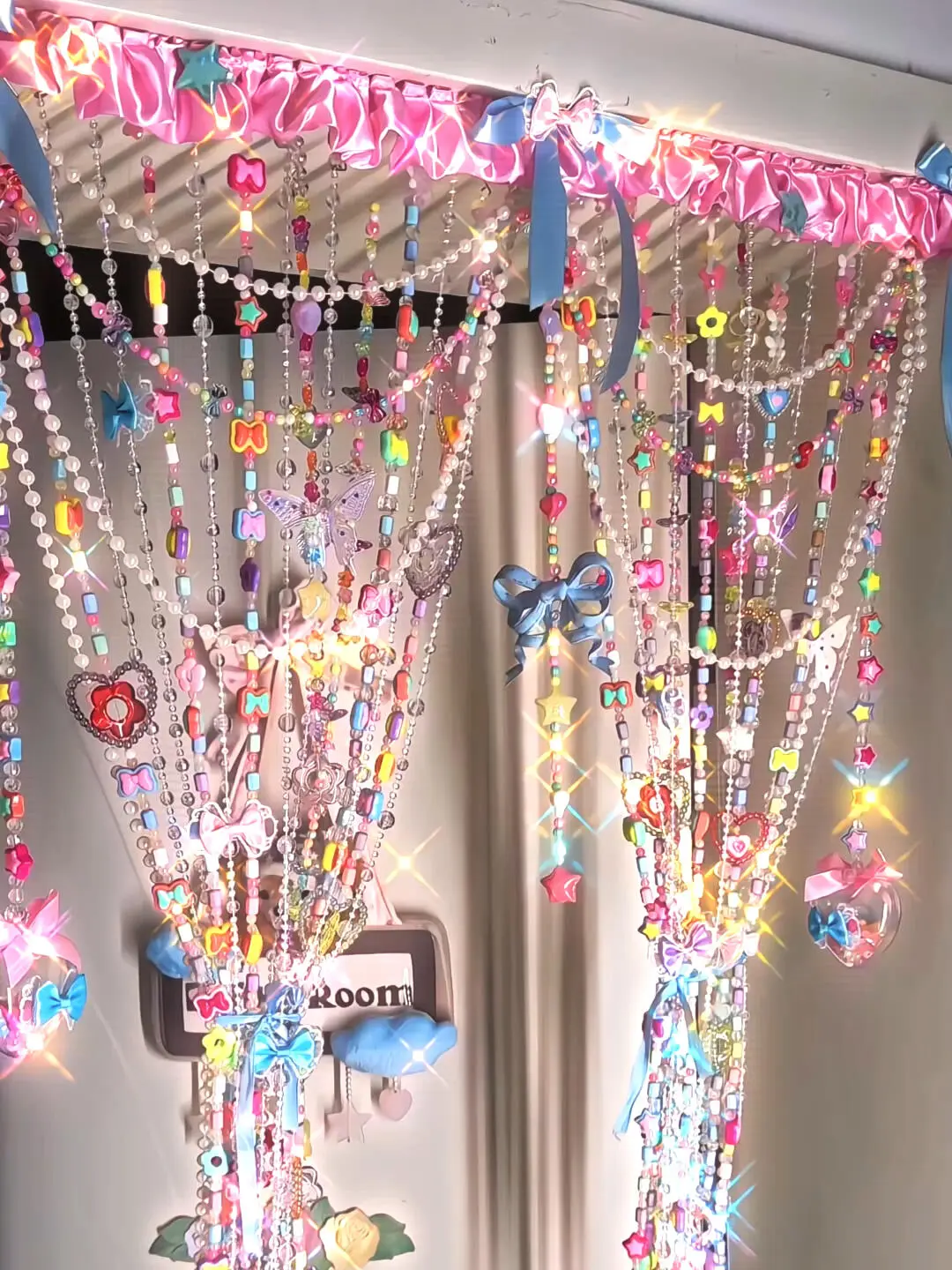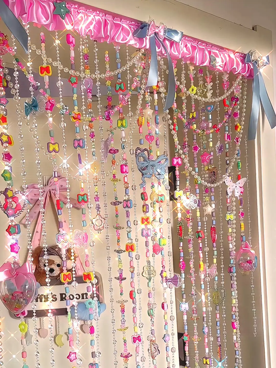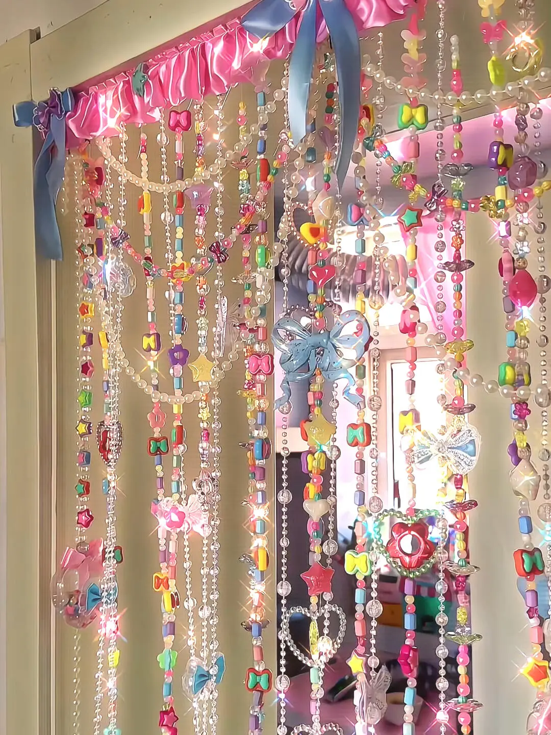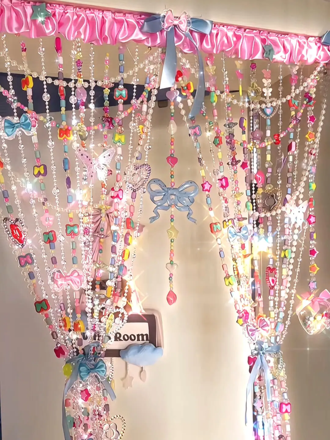 A sweet and colorful beaded curtain that shimmers like candy in a fairy tale—perfect for adding a touch of princess magic to your room.