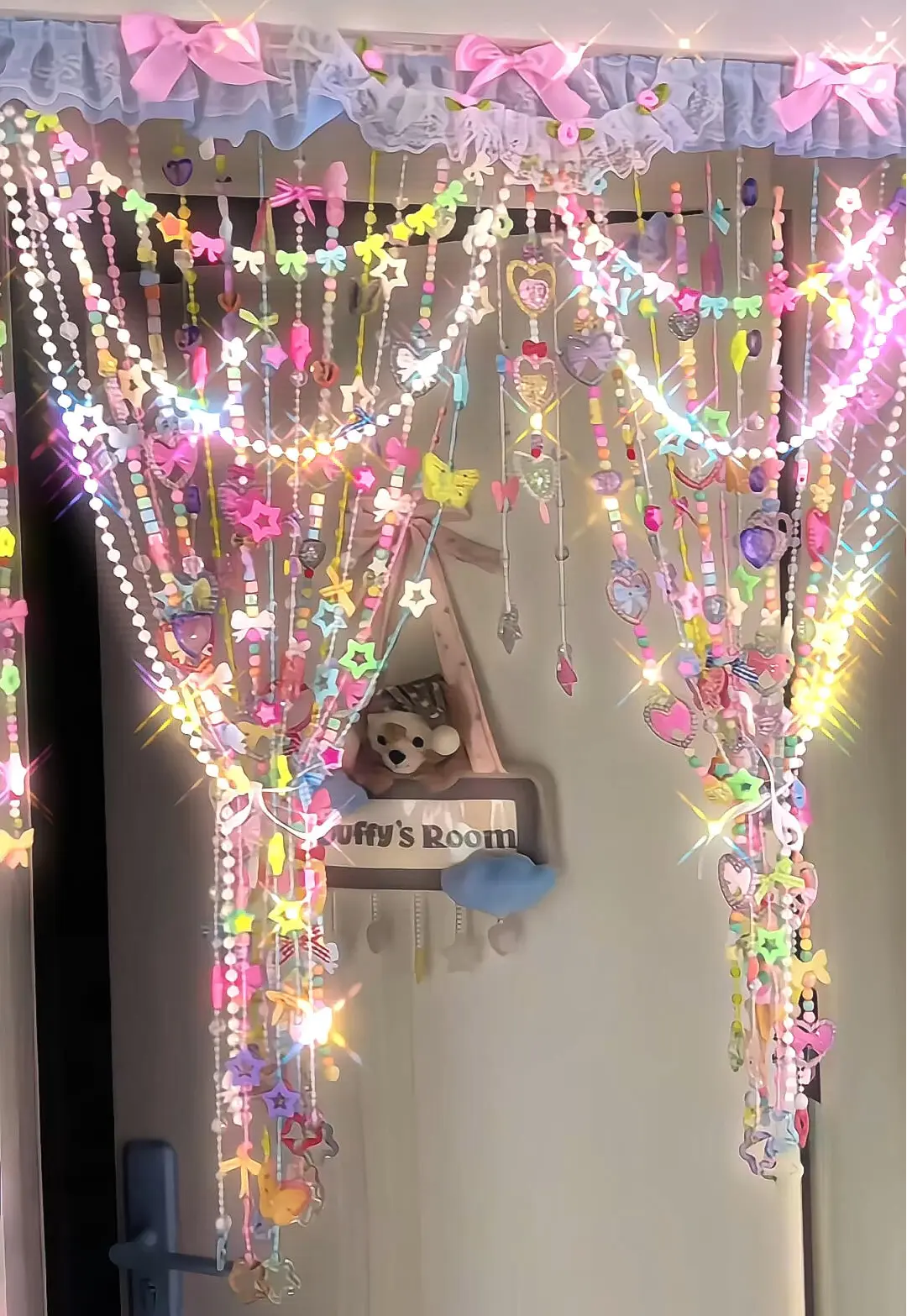 Step into a world of shimmering dreams with our FairyDrape Starry Dream Beaded Curtain. Each strand is lovingly handmade, featuring twinkling stars, colorful hearts, and sweet butterflies that capture the light and create a mesmerizing sparkle.